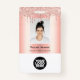 Easily personalize this Custom Employee Name Badge with Photo, Scan Bar Code and business logo. A glam and girly business design in faux metallic foil blush pink and white colors fully customizable in front and back sizes, sans-serif basic and modern fonts and a professional and clear look. Avaiable with lanyard, metal clip or with retractable. No minimum order.