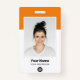 Easily personalise this Custom Employee Name Badge with Photo, Scan Qr Bar Code and business logo. A simple business design in orange and white colours fully customisable in front and back sizes, sans-serif basic and modern fonts and a professional and clear look. Avaiable with lanyard, metal clip or with retractable. No minimum order.