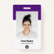 Easily personalise this Custom Employee Name Badge with Photo, Scan Qr Bar Code and business logo. A simple business design in purple and white colours fully customisable in front and back sizes, sans-serif basic and modern fonts and a professional and clear look. Avaiable with lanyard, metal clip or with retractable. No minimum order.