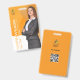 Create a professional look for your workplace with this customisable employee ID badge design. Featuring a bold orange header, photo placement, name, job title, and ID number, this design is perfect for businesses, offices, schools, and organisations that need clear and stylish identification cards. Personalise it with your company logo, employee details, and colours to match your brand. A practical and professional solution for staff identification and workplace security.