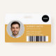 A professional and fully customisable Employee ID Badge template. Upload your own photo, name, job title, and employee ID number. The design includes a realistic barcode for authenticity, with editable text fields for company details. Perfect for businesses, organisations, schools, and events needing clean and modern ID cards.