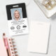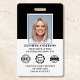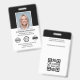 Create a professional appearance with a branded employee ID badge. This editable template can be personalised with your profile photo, name, job title, company logo and accreditation symbols. Return details are on the back, along with additional information, and a barcode or QR code. A simple and stylish design with an elegant serif font. Perfect for creating a cohesive branding experience, or simply to verify the identity of the wearer and display their qualifications. This identification badge is ideal for customer-facing roles and corporate settings — from business consultants and retail stores to medical professionals, hospital staff, office workers, conference teams, corporate events and more. Custom badges build brand identity and enhance security. Printed colours: black and white.