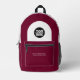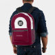 Easily personalise this professional backpack adding your company logo and a custom text. You can add business name, slogan, social media, website or any additional info, or delete it. A simple and modern design in WARM burgundy marsala cherry wine red and black featuring clear sans serif font, for a professional and edgy look, perfect as promotional gift for employee, customers, corporate celebrations, tradeshow. The backpack can be customised in any colour and any font. No minimum.