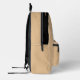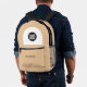 Easily personalise this professional backpack adding your company logo and a custom text. You can add business name, slogan, social media, website or any additional info, or delete it. A simple and modern design in camel and white featuring clear sans serif font, for a professional and edgy look, perfect as promotional gift for employee, customers, corporate celebrations, tradeshow. The backpack can be customised in any colour and any font. No minimum.