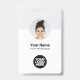 Easily personalise this Custom Business Minimalist Employee Name Badge with Photo, Scan Qr Code or Scan Bar Code and business logo. A simple business design with round photo, in light grey and white colours fully customisable in front and back sizes, sans-serif basic and modern fonts and a professional and clear look. Avaiable with lanyard, metal clip or with retractable. No minimum order.