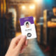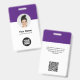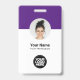 Easily personalise this Custom Business Minimalist Employee Name Badge with Photo, Scan Qr Code or Scan Bar Code and business logo. A simple business design with round photo, in purple and white colours fully customisable in front and back sizes, sans-serif basic and modern fonts and a professional and clear look. Avaiable with lanyard, metal clip or with retractable. No minimum order.