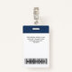 Easily personalise this Custom Administrative professional Name Badge without photo, featuring an easy copy and paste qr code template, Scan Bar Code and large business logo. A simple business design in navy blue and white colours fully customisable in front and back sizes, sans-serif basic and modern fonts and a professional and clear look, perfect for small business employee, boss, guests. These business id badges supplies are avaiable with lanyard, metal clip or with retractable. No minimum order, but save money and enjoy Zazzle discounts by multiple orders!