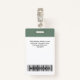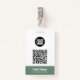 Easily personalise this Custom Administrative professional Name Badge without photo, featuring an easy copy and paste qr code template, Scan Bar Code and large business logo. A simple business design in organic sage green and white colours fully customisable in front and back sizes, sans-serif basic and modern fonts and a professional and clear look, perfect for small business employee, boss, guests. These business id badges supplies are avaiable with lanyard, metal clip or with retractable. No minimum order, but save money and enjoy Zazzle discounts by multiple orders!