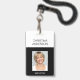 Professional Corporate Work Name, Photo and Job Title Black and White ID Photo Vertical Business Badge. This design is simple and easy to use by changing your first and last name as well as your job title and business head shot.