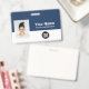 Easily personalise this Custom Employee Name Badge with Photo, Scan Bar Code and business logo, with lanyard included. A simple business design in navy blue and white colours fully customisable in front and back sizes, sans-serif basic and modern fonts and a professional and clear look. Avaiable with or without lanyard, metal clip or with retractable. No minimum order.