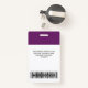 Easily personalise this Violet Custom Employee Name Badge with Photo, Scan Bar Code and business logo. A simple business design in violet and white standard colours fully customisable in front and back sizes, sans-serif basic and modern fonts and a professional and clear look. Avaiable with lanyard, metal clip or with retractable. No minimum order.