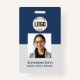 Easily personalise this Custom Employee Name Badge with Photo, Scan Bar Code and business logo. A simple business design in navy blue and white colours fully customisable in front and back sizes, sans-serif basic and modern fonts and a professional and clear look. Avaiable with lanyard, metal clip or with retractable. No minimum order.
