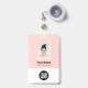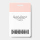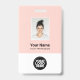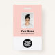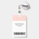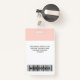 Easily personalise this pastel blush pink Custom Employee Name Badge with Photo, Scan Bar Code and business logo. A simple business design in girly light pink and white standard colours fully customisable in front and back sizes, sans-serif basic and modern fonts and a professional and clear look. Avaiable with lanyard, metal clip or with retractable. No minimum order.