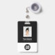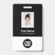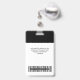 Easily personalise this Black and White Custom Employee Name Badge with Photo, Scan Bar Code and business logo. A simple business design in monochrome standard colours fully customisable in front and back sizes, sans-serif basic and modern fonts and a professional and clear look. Avaiable with lanyard, metal clip or with retractable. No minimum order.