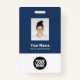 Easily personalise this Custom Employee Name Badge with Photo, Scan Bar Code and business logo. A simple business design in navy blue and white colours fully customisable in front and back sizes, sans-serif basic and modern fonts and a professional and clear look. Avaiable with lanyard, metal clip or with retractable. No minimum order.