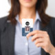 A basic business design that highlights your office logos and employee name. You can add a scan bar code on the front and back. You can also change the colour of the background.