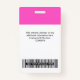 Easily personalise this neon fuchsia raspberry pink Custom Employee Name Badge with Photo, Scan Bar Code and business logo. A simple business design in girly cute fuchsia pink and white standard colours fully customisable in front and back sizes, sans-serif basic and modern fonts and a professional and clear look. Avaiable with lanyard, metal clip or with retractable. No minimum order.