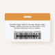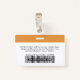 Easily personalise this Custom Horizontal Employee ID company Name Badge with Photo, Scan Bar Code or Qr code and business logo. A simple and clean business design in modern tangerine orange and white colours fully customisable in front and back sizes, sans-serif basic and modern fonts and a professional and clear look. These standard security id name tags badges are avaiable with lanyard, metal clip or with retractable. You can personalise your id badge cards choosing any background colour and any font style with Graphic Design editor by clicking on customise further. No minimum order.