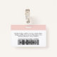 Easily personalise this Custom Horizontal Employee ID company Name Badge with Photo, Scan Bar Code or Qr code and business logo. A simple and clean business design in feminine blush pink and white colours fully customisable in front and back sizes, sans-serif basic and modern fonts and a professional and clear look. These standard security id name tags badges are avaiable with lanyard, metal clip or with retractable. You can personalise your id badge cards choosing any background colour and any font style with Graphic Design editor by clicking on customise further. No minimum order.