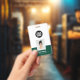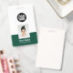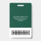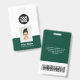 Easily personalise this Custom Employee Name Badge with Photo, Scan Bar Code and large business logo. A simple business design in dark green and white colours fully customisable in front and back sizes, sans-serif basic and modern fonts and a professional and clear look. Avaiable with lanyard, metal clip or with retractable. No minimum order.