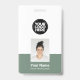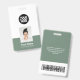 Easily personalise this Custom Employee Name Badge with Photo, Scan Bar Code and large business logo. A simple business design in cool sage green and white colours fully customisable in front and back sizes, sans-serif basic and modern fonts and a professional and clear look. Avaiable with lanyard, metal clip or with retractable. No minimum order.