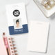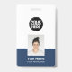 Easily personalize this Custom Employee Name Badge with Photo, Scan Bar Code and large business logo. A simple business design in navy blue and white colors fully customizable in front and back sizes, sans-serif basic and modern fonts and a professional and clear look. Avaiable with lanyard, metal clip or with retractable. No minimum order.