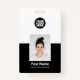 Easily personalise this Custom Employee Name Security ID Badge with Photo, Employee name, profession and business logo. A simple business design in cool stylish black and white colour fully customisable in front and back sizes, sans-serif basic and modern fonts for a professional and clear look. The id badges are avaiable with lanyard, metal clip or with retractable. No minimum order.