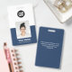Easily personalise this Custom Employee Name Security ID Badge with Photo, Employee name, profession and business logo. A simple business design in navy blue and white colour fully customisable in front and back sizes, sans-serif basic and modern fonts for a professional and clear look. The id badges are avaiable with lanyard, metal clip or with retractable. No minimum order.