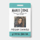 Customise your employee's Photo ID badges. All details can be modified or removed. Photo, name, company, department/division/title. Crisp black text on white background with teal borders at the top and bottom. Every detail can be customised, including colours and fonts. Spot for additional information on reverse of badge, if needed. If not, can be deleted. MATCHING BUSINESS CARD AVAILABLE IN OFFICE->BUSINESS CARDS
