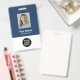 Easily personalise this Custom Employee Name Badge with a Photo and business logo, customise with a barcode on the back if needed. A simple business design in navy blue and white colours, fully customisable in front and back sizes, sans-serif basic and modern fonts, and a professional and clear look. Available with a lanyard, a metal clip, or with a retractable clip. No minimum order.