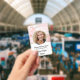 Custom Employee, Photo, Bar Code, Logo, Name Badge with Blush pink agate marble background