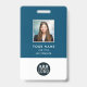 Minimalist photo security id badge in navy blue and white colours fully customisable with your company details as well as personnel information on both the front and reverse side.