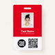 Easily personalise this Custom Employee Name Badge with Photo, Scan QrCode and Bar Code and business logo. A simple business design in eyecatching bold fire red and white colours fully customisable in front and back sizes, sans-serif basic and modern fonts and a professional and clear look. Avaiable with lanyard, metal clip or with retractable. No minimum order.