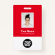 Easily personalise this Custom Employee Name Badge with Photo, Scan Qr Code (always readable, it works!) and business logo. A simple business design in eyecatching red and white colours fully customisable in front and back sizes, sans-serif basic and modern fonts and a professional and clear look. Avaiable with lanyard, metal clip or with retractable. No minimum order.