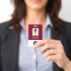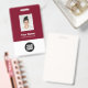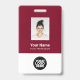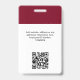Easily personalise this Custom Employee Name Badge with Photo, Scan Qr Code (always readable, it works!) and business logo. A simple business design in dark cherry burgundy marsala wine red and white colours fully customisable in front and back sizes, sans-serif basic and modern fonts and a professional and clear look. Avaiable with lanyard, metal clip or with retractable. No minimum order.