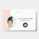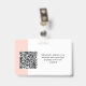 Easily personalise this Custom Horizontal Business Minimalist Employee Name Badge with Photo, Scan Qr Code or Scan Bar Code and business logo. A simple business design with round photo, in trendy chic blush pink and white colours fully customisable in front and back sizes, sans-serif basic and modern fonts and a professional and clear look. Avaiable with lanyard, metal clip or with retractable. No minimum order.
