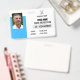 Easily personalize this Custom Employee Name Badge with Photo, and business logo. A simple business design in navy blue and white colors fully customizable in front and back sizes, sans-serif basic and modern fonts and a professional and clear look. Avaiable with lanyard, metal clip or with retractable. No minimum order.