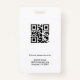 Modern square-shaped personalised employee photo ID name badge with a custom QR code. Simple, sleek light blue Identification name and title photograph badges. Security photo tag.