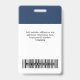 Easily personalise this Custom Employee Name Badge with or without Photo, Qr Code, Scan Bar Code and business logo. A simple business design in navy blue and white colours fully customisable in front and back sizes, sans-serif basic and modern fonts and a professional and clear look. Avaiable with lanyard, metal clip or with retractable. No minimum order.