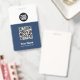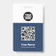 Easily personalise this Custom Employee Name Badge with Qr Code, Scan Bar Code and business logo. A simple business design in navy blue and white colours fully customisable in front and back sizes, sans-serif basic and modern fonts and a professional and clear look. Avaiable with lanyard, metal clip or with retractable. No minimum order.