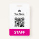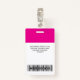 Easily personalise these business name badges without photo, with readable Qr Code (it always works!) and Bar Code and large business logo. This company id maker has a simple business name tag design in cute neon pink and white colours fully customisable in front and back sizes, sans-serif basic and modern fonts and a professional and clear look, perfect for small business employee, boss, guests. These business id badges supplies are avaiable with lanyard, metal clip or with retractable. Enjoy excellent Zazzle's badge printing service! No minimum order, and the more you buy, the more you save. Bulk discounts are avaiable with multiple orders, for different employees too!