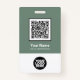 Easily personalise this Custom Employee Name Badge with or without Photo, Qr Code, Scan Bar Code and business logo. A simple business design in sage green and white colours fully customisable in front and back sizes, sans-serif basic and modern fonts and a professional and clear look. Avaiable with lanyard, metal clip or with retractable. No minimum order.