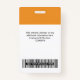 Easily personalise this Custom Employee Name Badge with Round Profile id Photo, Scan Bar Code and business logo. A simple business design in tangerine orange and white colours fully customisable in front and back sizes, sans-serif basic and modern fonts and a professional and clear look. Avaiable with lanyard, metal clip or with retractable. No minimum order.