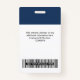 Easily personalise this Custom Employee Name Badge with Round Profile id Photo, Scan Bar Code and business logo. A simple business design in navy blue and white colours fully customisable in front and back sizes, sans-serif basic and modern fonts and a professional and clear look. Avaiable with lanyard, metal clip or with retractable. No minimum order.