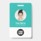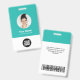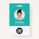 Easily personalise this Custom Employee Name Badge with Round Profile id Photo, Scan Bar Code and business logo. A simple business design in turquoise light blue and white colours fully customisable in front and back sizes, sans-serif basic and modern fonts and a professional and clear look. Avaiable with lanyard, metal clip or with retractable. No minimum order.