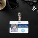 Create your own custom, personalised, durable PVC plastic, won't fade or tear, cool modern trendy dark blue and white, name photo ID badge, with choice of attachments - lanyard, metal clip, retractable, or none. To personalise, enter the name of the employee / staff / executive, their designation, and any additional information like employee ID, issue & expiry date of the badge, if lost return to & the address, etc. Next add the photo of the employee / staff / executive, add the business / company logo, and add the barcode. While you type/design, you'll be able to see a preview of your badge, throughout. Great for small business, corporate, school, restaurant, office, concert, retail, hospital, clinic, and for employee, staff, doctor, teacher, student.
