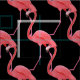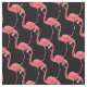 Fabric shown in a tropical pink flamingo print on a black background colour.