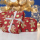 Full roll of berry red seamless pattern with green peppermint candy rounds. This custom photo gift wrap that allows for personalisation including someone's (very tightly cropped) face picture on all of the little gingerbread people.