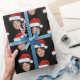 Custom Face Photo Santa Claus Hat Christmas Black Wrapping Paper