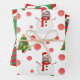 Custom Face Photo Snowman Wrapping Paper Sheets. Three different selection of wrapping paper design one traditional snow with christmas tree, read and green stripes with custom photo and finally green, red and yellow dots with custom photo. Easy and funny to customise wrapping paper for Christmas